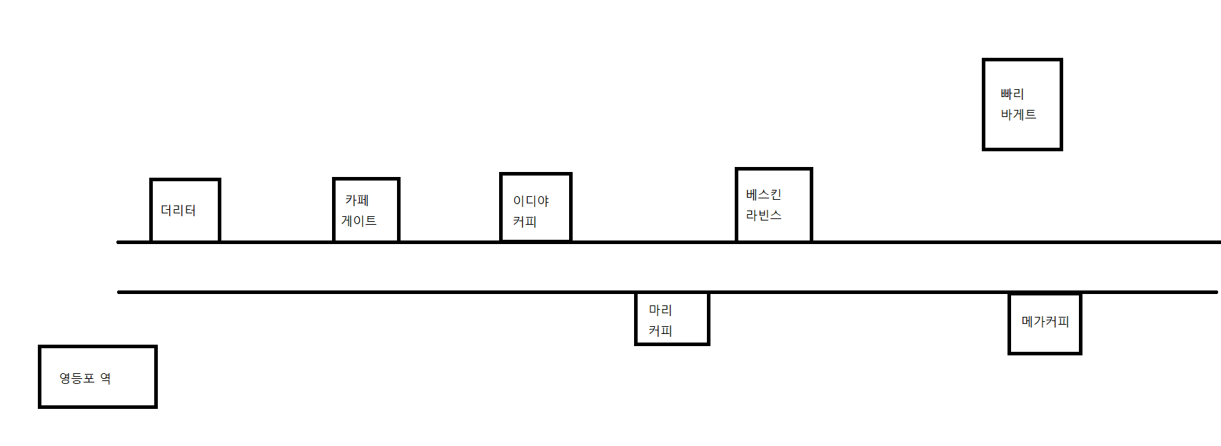 영등포역에서 푸르지오 아파트 입구까지 오는 길은 아무리 넉넉하게 봐도 200미터 정도밖에 안 됩니다. 그런데 그 사이의 길에 저렇게 커피를 파는 가게가 7개가 있습니다. 반대편의 영등포 공원쪽으로 가는 길에 두개가 또 있고요.(일단 이번엔 그 두개는 제외하도록 할게요. 반대편이라)