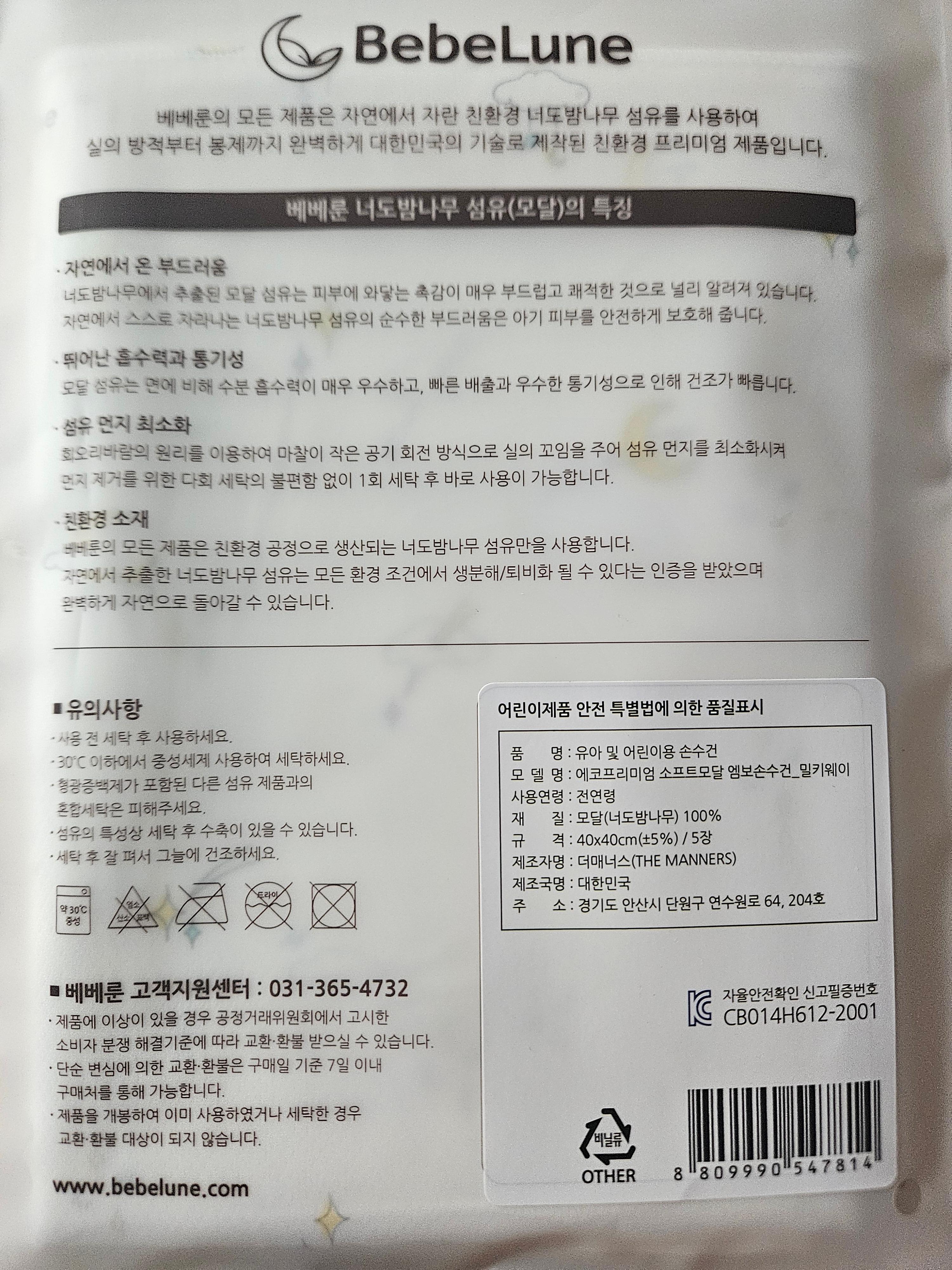 포장에 모달소재의 특징을 요약해서 적어두었는데, 초보 엄마, 아빠들에게 도움이 된다는 생각이 들었다.
