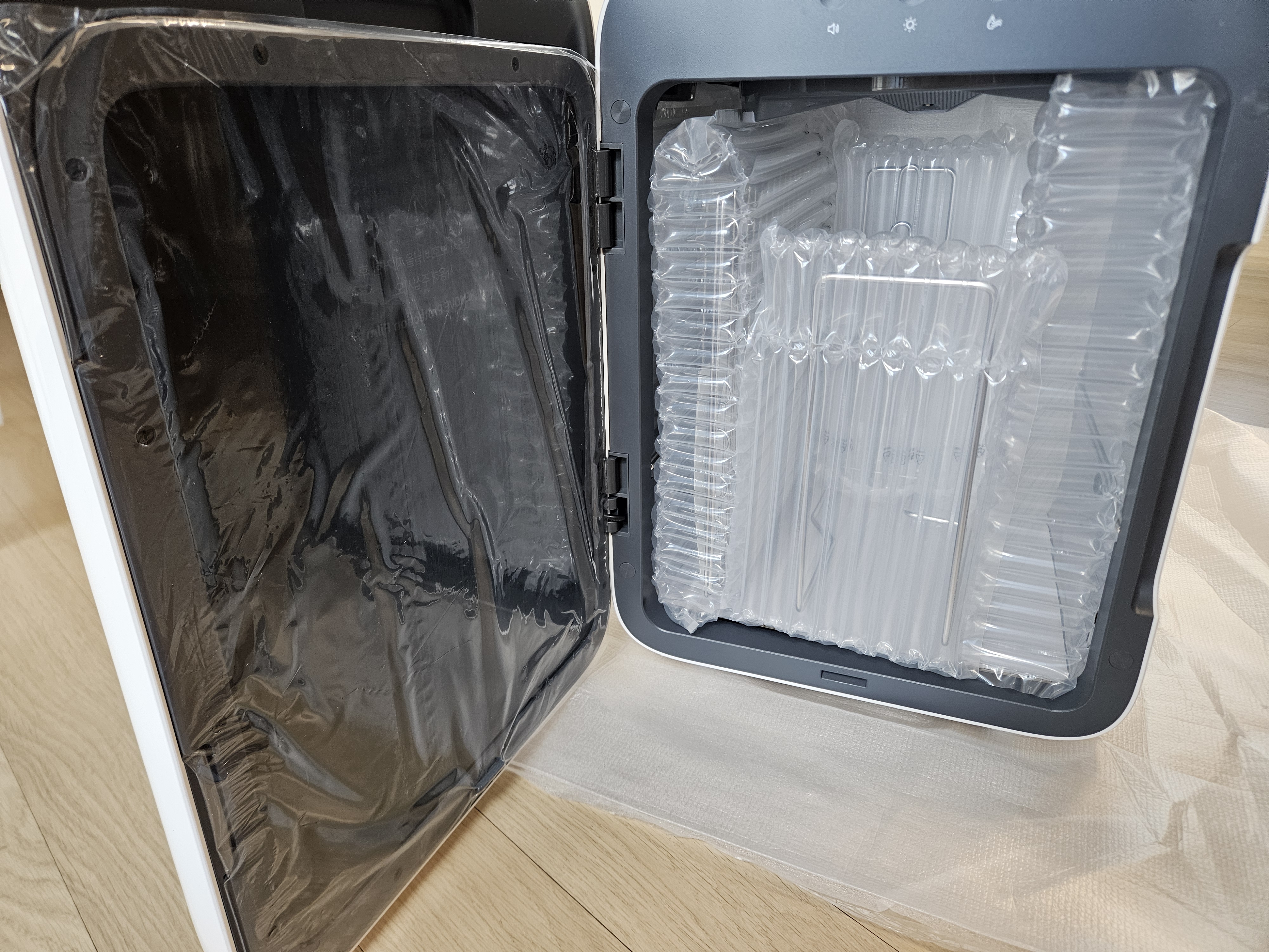 4. 포장 및 배송: 에어캡에 빡세게 포장되어서 와서 파손 걱정은 덜었다. 내부도 꼼꼼하게 보강되어서 배송되었음.